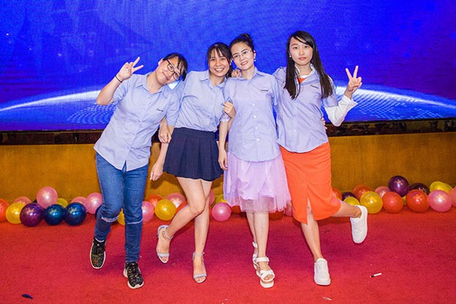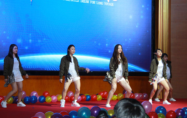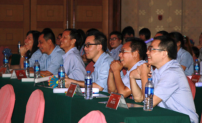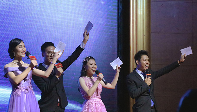 主持人由財務部陳嫻、研發(fā)部李國文、財務部盧葆黛、國外銷售部陳繼擔任。