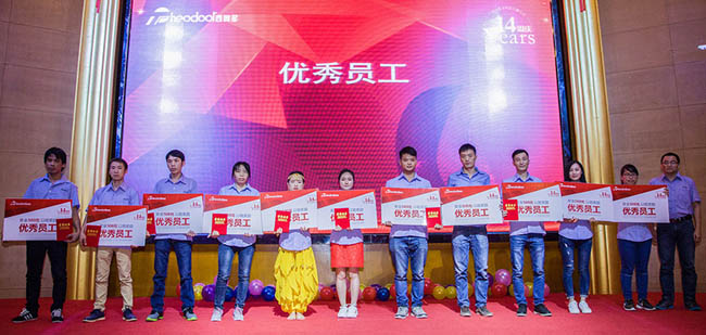 盧總、吳總、蘇總為優(yōu)秀管理者頒獎。