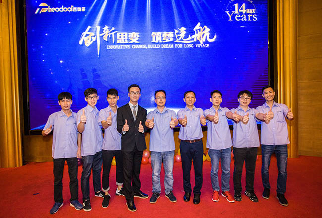 莫董與研發(fā)部合影 高智商高顏值!要問科技達人哪里多,要數(shù)西奧多!