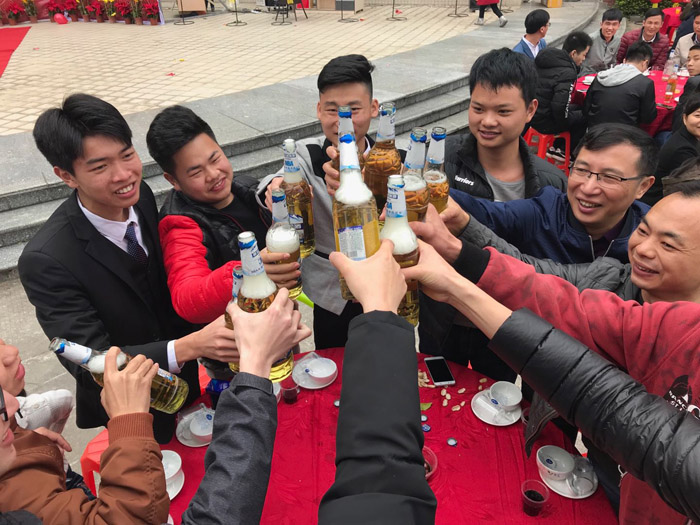 西奧多領(lǐng)導(dǎo)為全體員工送上誠摯的新年祝福:“祝愿全體同仁在新的一年,旺事如意,闔家幸福,人旺財旺事業(yè)旺!”美味佳肴,大家舉杯同慶。