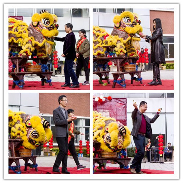 領(lǐng)導(dǎo)為瑞獅點(diǎn)睛,被喚醒的獅子生龍活虎。獅子采青,領(lǐng)導(dǎo)接“青”接福,預(yù)祝西奧多在新的一年財源廣進(jìn)、節(jié)節(jié)高升。