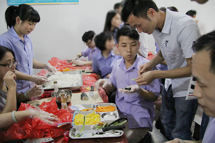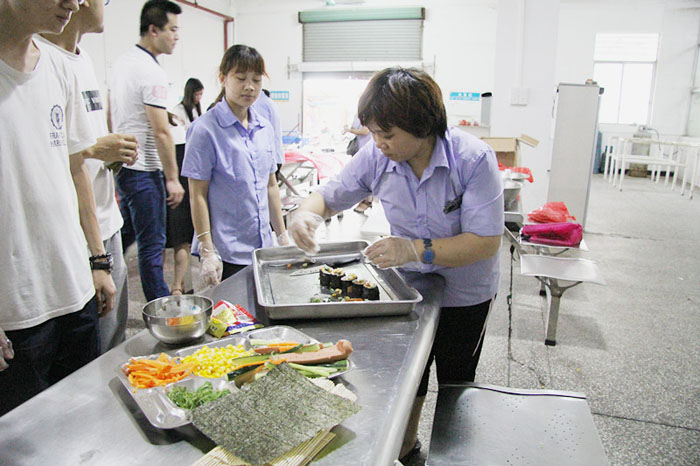 國外銷售部、人力資源部、財務(wù)部的美眉們心靈手巧,一個個精致的壽司首秀閃亮登場。