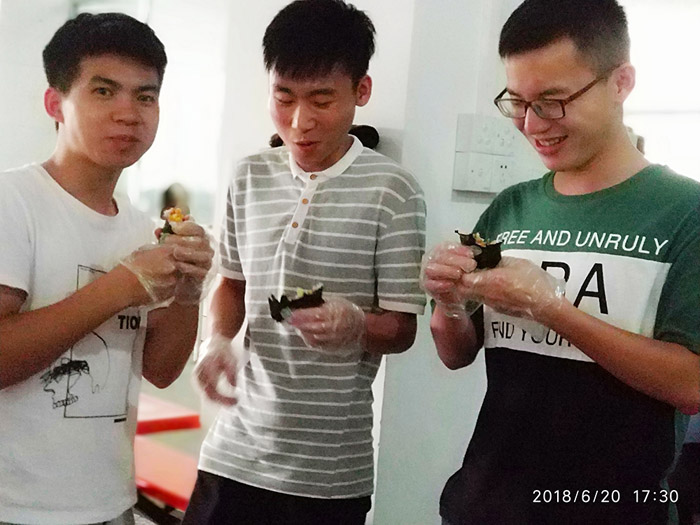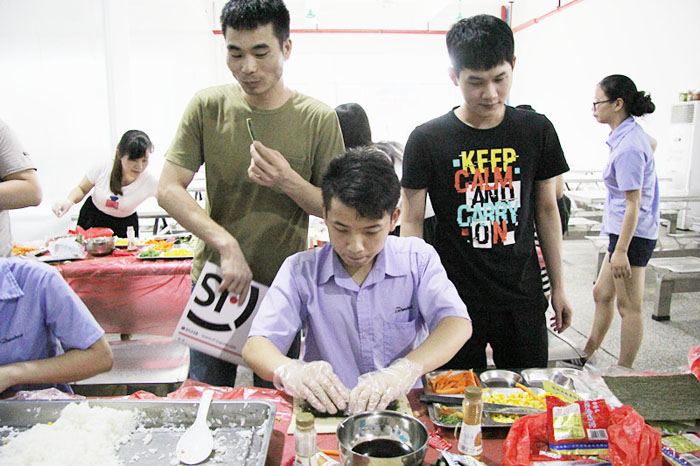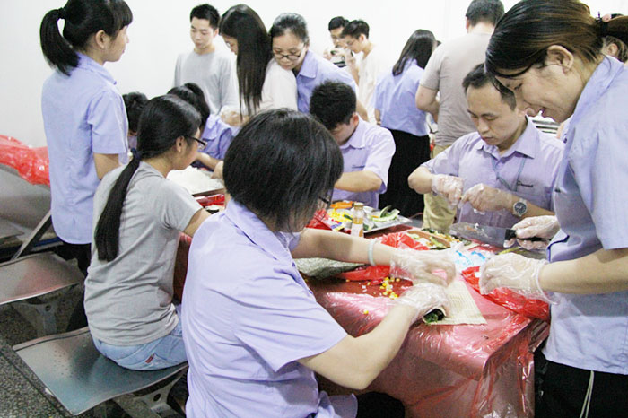 你的壽司你做主,口味自由配,品質(zhì)部、技術(shù)部等部門的同事紛紛體驗壽司DIY的樂趣。