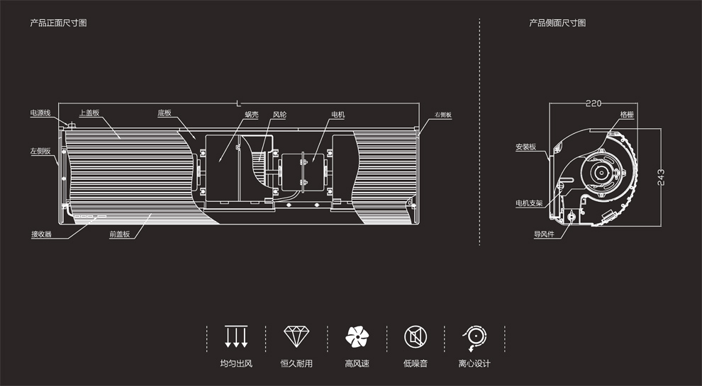 采用不等距靜音風(fēng)輪,出風(fēng)平穩(wěn)均勻